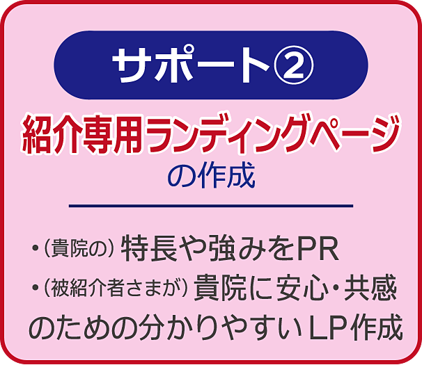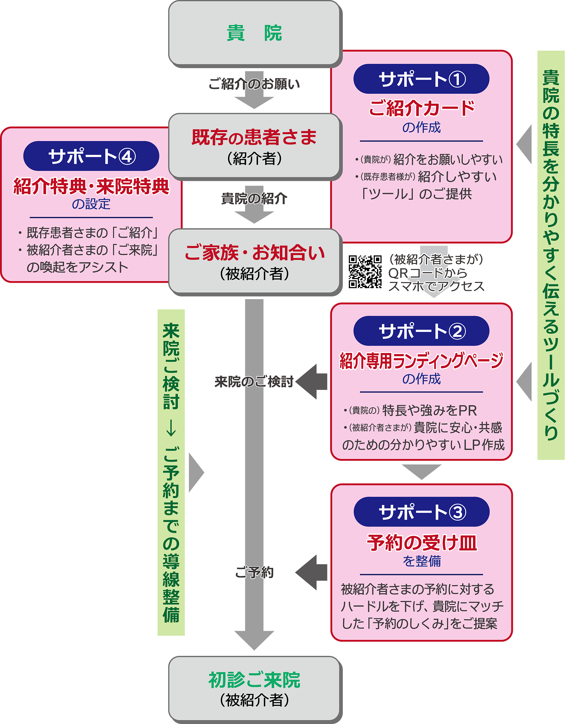 紹介集客を貴院の営業活動の一つの柱として確立していきます。