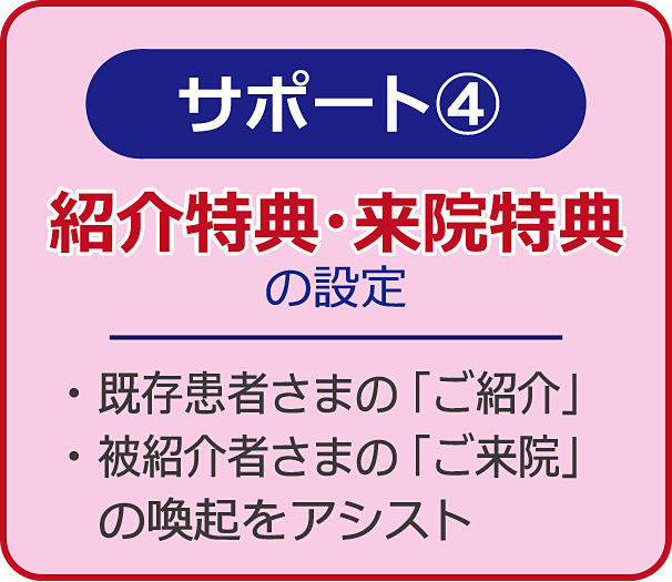 紹介者と被紹介者に喜んでいただける紹介者特典・ご来院特典をしっかりと設定する